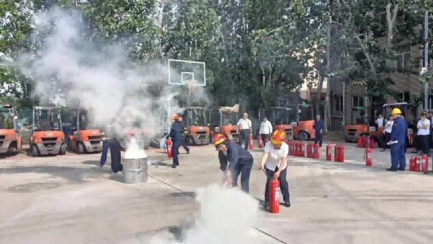 培训前安全部科长李红波,向大家强调了学习使用灭火器的重要性,其次由消防队刘明伟细致讲解了火灾发生初期的扑救方法及灭火过程中的自我保护等事项,现场示范了干粉灭火器的正确使用方法。为实现“消防设施人人会,规范使用记心间”的培训目的,参训人员均兴致勃勃、热情踊跃参加操作演练。