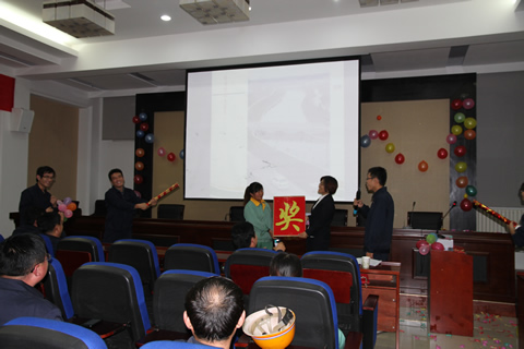 品保部组织的金能文化淘汰赛中,选手答不上来的问题,交予场下观众,观众答对者有精美礼品相送。