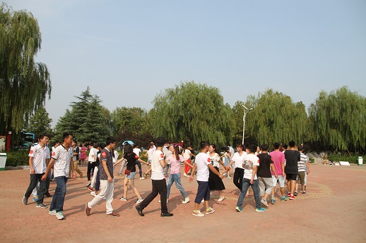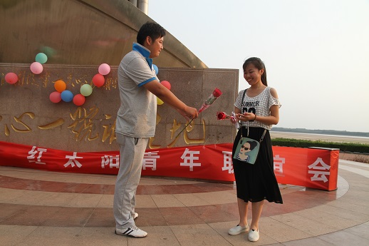 8月29日14:30,黄河岸畔的红心广场顿时热闹了起来:竹板声声,吉他弹唱,歌声悠扬,舞蹈翩翩,60余名青年单身男女在这里相聚,参加公司与红太阳幼儿园共同举办的“约在八月、缘定你我”大型青年联谊会。