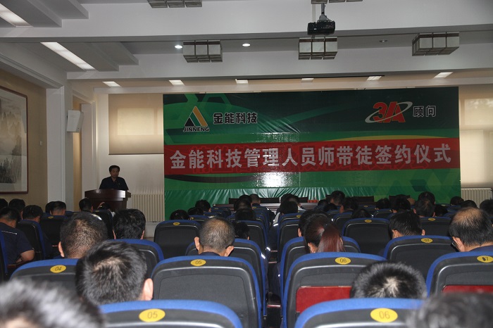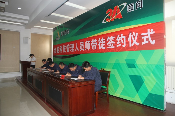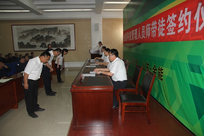 管理及技术人员师带徒,是今年培训工作的一项重要内容。管理上,师傅由管理经验丰富的中高层管理人员担任,徒弟重点筛选有发展潜力、综合素质强的人;技术上,师傅由业务精湛的技术人员担任,徒弟是技术悟性高、好学上进的年轻人。据了解,在此次选拔签约的53对师徒中,有1位老师同时带2名徒弟,也有既当老师、也当徒弟,薪火传承,还有毕业不久的李金伟和冯萍夫妇,同为徒弟,同台签约。