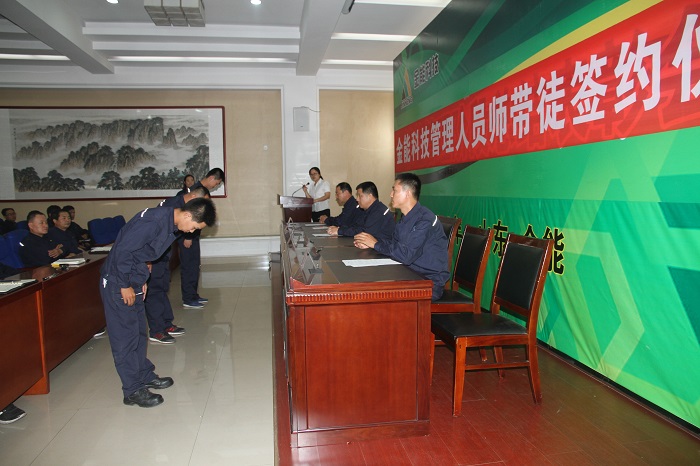 徒弟高玉宝表态,“我将虚心向师傅请教,勤于学习,理论结合实践,力求每天进步,不辜负师傅的期望和公司的培养”。