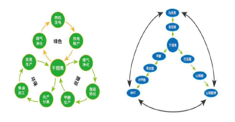 公司焦炭生产的主装置 7 米顶装焦炉技术先进,行业领先,且全部采用干法熄焦工艺,节能环保;炭黑方面,公司属首家研发应用煤气生产的企业,且检测手段领先,拥有炭黑国家认可实验室;公司的球状山梨酸钾引领着行业发展趋势,其造粒装置获国家实用新型专利;公司的燃气轮机利用煤气发电、产汽,开创了燃气轮机利用煤气热电联产的先河,发电后的尾气回收二次热电联产,荣获国家发明专利。